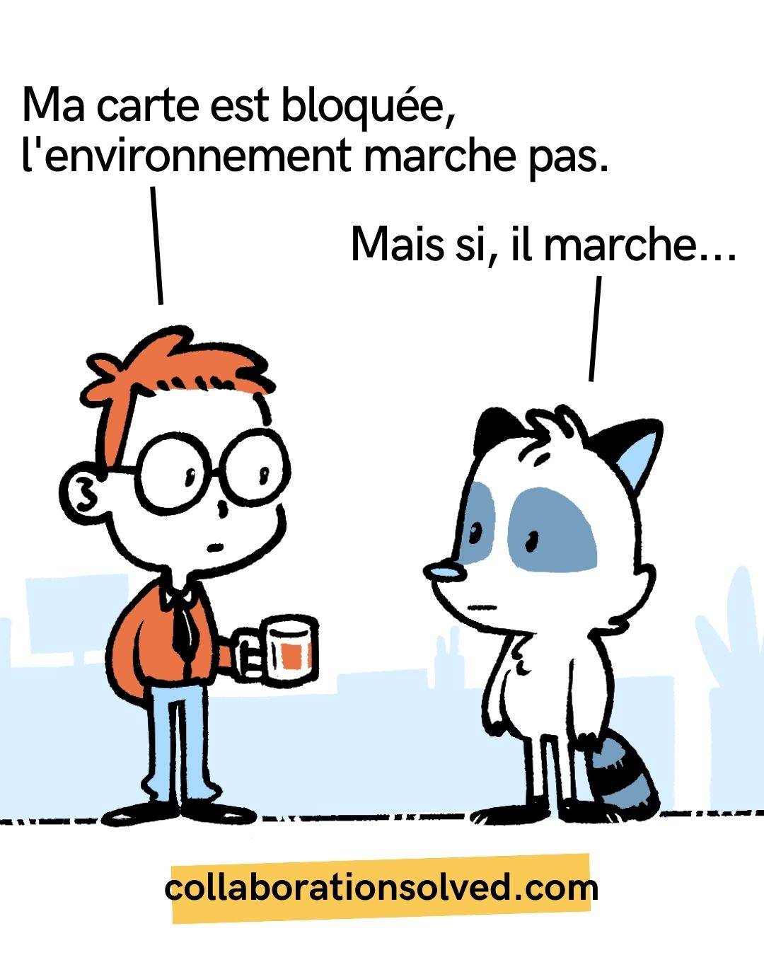 -Le QA : "Mais si, l'environnement fonctionne, il n'y a pas de problème."