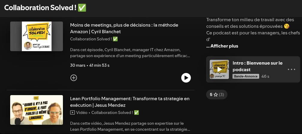 "J'aime l'approche de t'entourer d'experts et de dépoussiérer le podcast. C'est rafraîchissant d'avoir des exemples concrets et du partage d'expérience. Ton approche et tes questions sont focalisées sur le pratico-pratique et ça fait du bien." - Claire